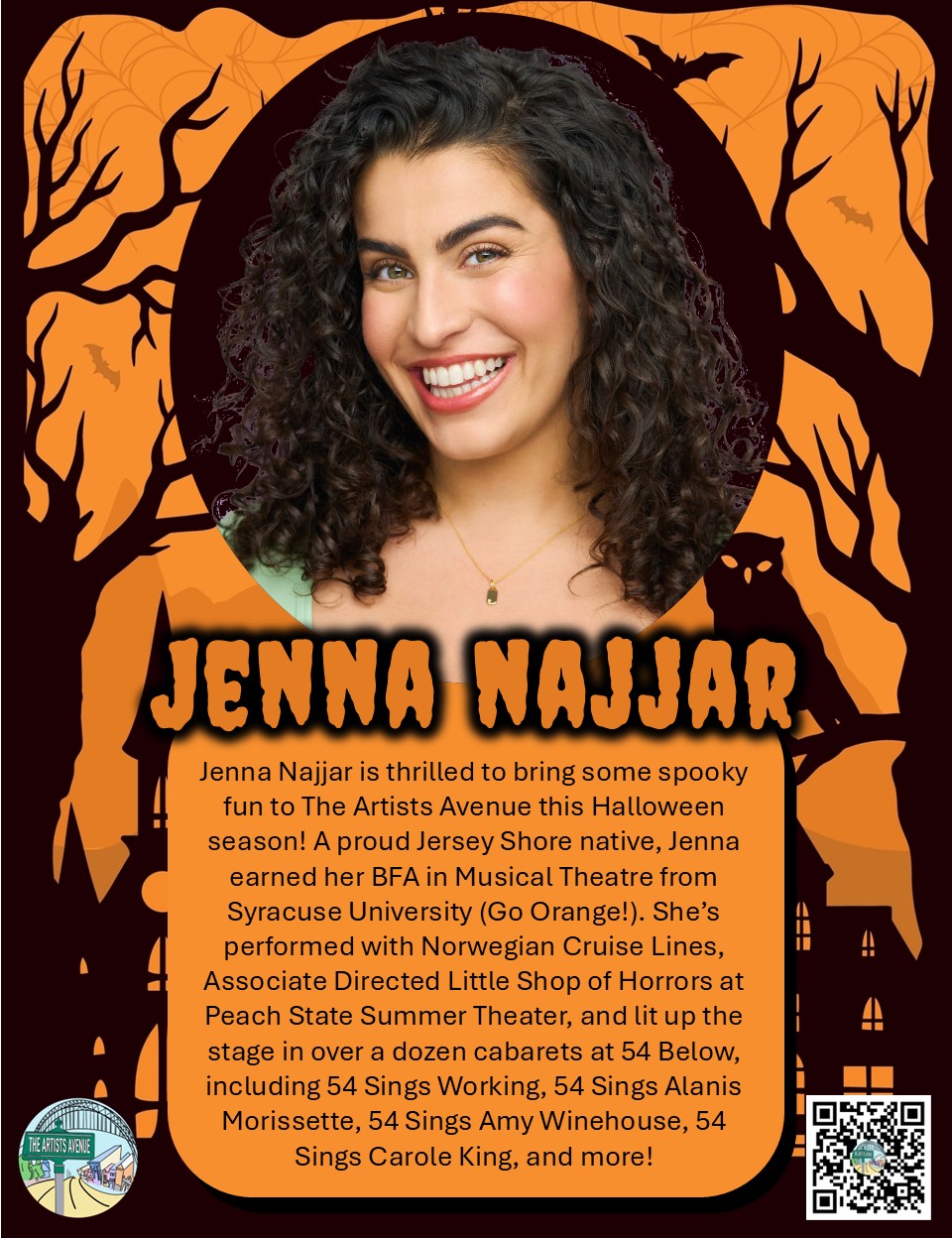 Step into the spotlight for a spook-tacular evening of Broadway magic! 👻✨ Join professional performer Jenna Najjar for a Halloween-themed “Acting Through Song” workshop that brings the thrill of Broadway right to Bayonne.